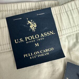 US Polo Assn Mens Comfort Cargo Shorts Sand Glass M Elastic Waist 8.5 Inseam