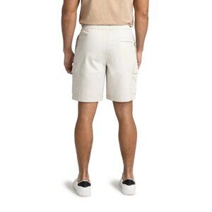The U.S. Polo Assn. Men's Comfort Waist Cargo Short in size M offers a comfortable fit with a drawstring closure and a mid-rise waist. Made from cotton fabric, these cargo shorts feature a flat front design and a solid beige color, perfect for casual occasions in the summer or spring seasons. With a comfortable 8.5" inseam and cargo pockets for added functionality, these shorts are a versatile addition to any man's wardrobe. The classic American outdoor style of the brand adds a touch of preppy flair to this practical and stylish piece of clothing.