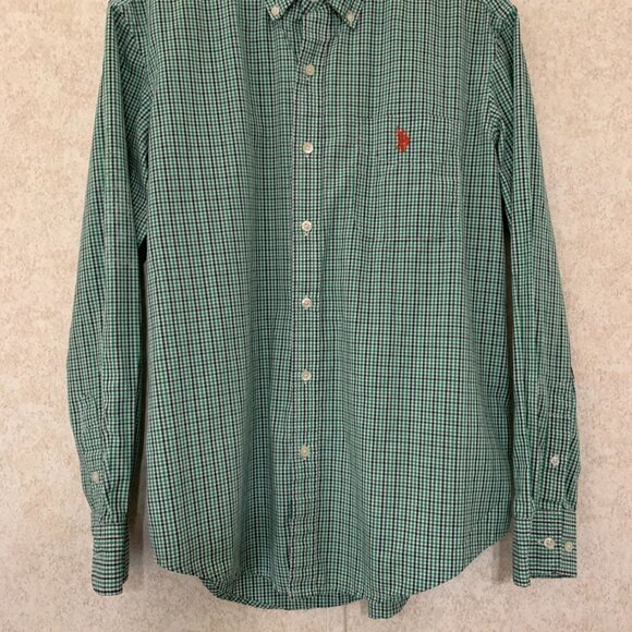U.S. Polo Assn Men's Green Blue Plaid Button Down Size Large