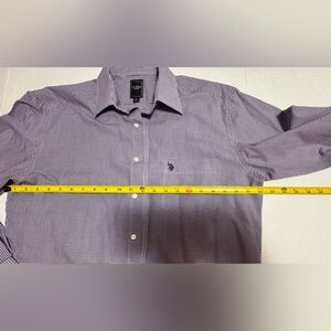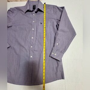 Pre-Owned US Polo Assn Mens M 15-15 1/2 32/33 Button Down Shirt purple and White Check Slim