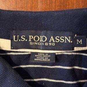 U.S. Polo Assn. Mens Navy Striped Polo Shirt M 100% Cotton