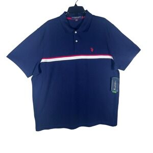 Keywords: polo shirt, mens polo, short sleeve, us polo assn, casual shirt, striped polo, mens top, 2XL, extra large, navy polo, logo shirt, sportswear, classic fit, preppy style