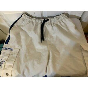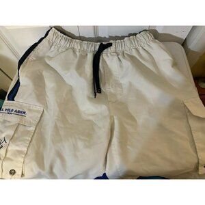 U.S. Polo Assn Men's Sz L Swim Trunks Board Shorts White Blue Cargo. Condition is "Pre-owned".