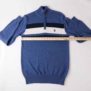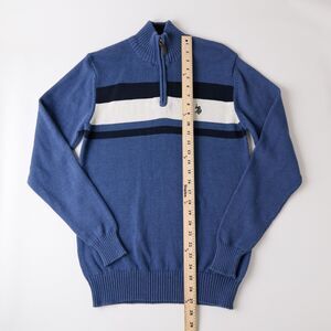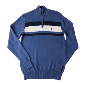 US Polo Assn Mens Sz S Blue Striped 1/4 Zip Sweater Retro Preppy Knit Collegiate