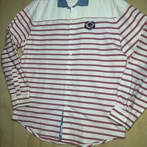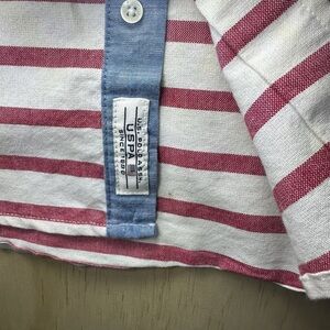 U.S. Polo Assn. Men's Vintage Look Rare White and Red Striped Button Down Shirt