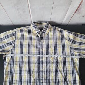 US Polo Assn. Men’s XL Plaid Short-Sleeve Shirt, 100% Cotton, Blue/White/Yellow, EUC
