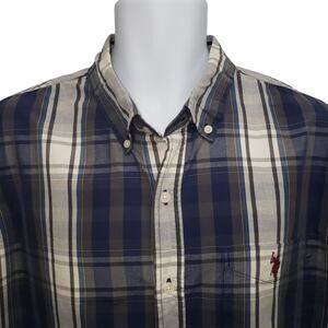 US Polo Assn Men’s XL Shirt Blue Gray Plaid Classic Fit Preppy Americana Vibe