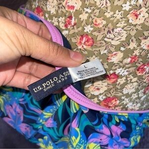 U.S. Polo Womens One Piece: Tropical Hawaiian Print Monokini Swimsuit. Cutout style insides, adjustable straps, pull-up style, low back bottoms, open back, very good condition, pet and smoke free home.