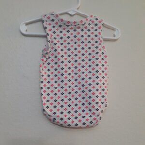 Adorable bodysuit with pink and blue pattern. Sleeveless design. Soft and comfortable fabric.