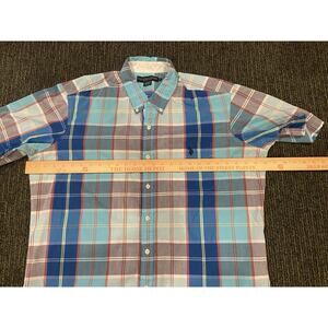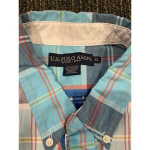 U.S. Polo Assn Plaid Button Up Shirt Short Sleeve Blue orange White Men's XL