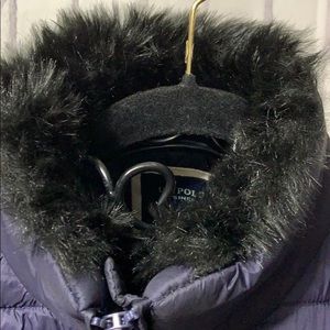 U.S. Polo Assn Puffer Jacket Tie Waisted Faux Fur Neck Long Line Coat