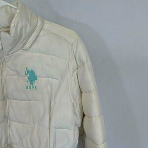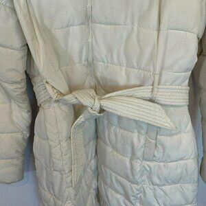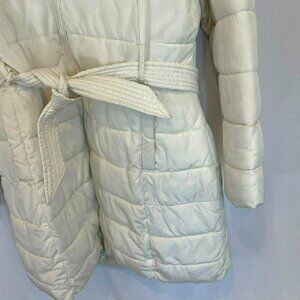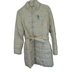 US Polo Assn Puffer Jacket Women's Size Large White Mid Length Belted Full Zip