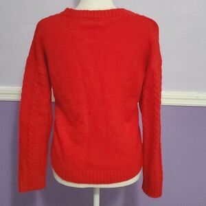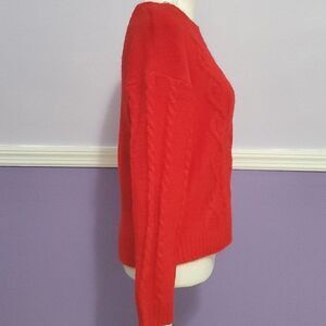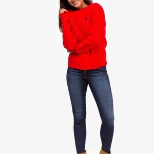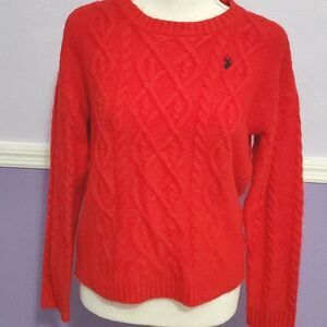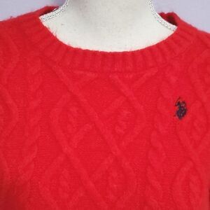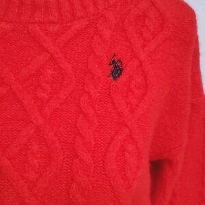 U.S. Polo Assn Red Cable Knit Logo Boxy Long Sleeve Sweater Cozy Contemporary M