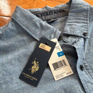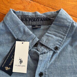 U.S. Polo Assn. Shirt Mens XL Solid Slub Canvas Button Down Chambray Blue Dress