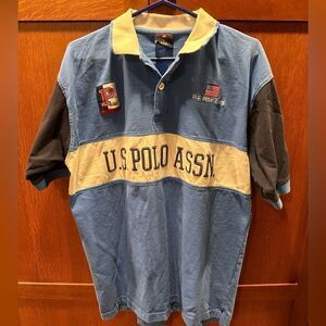U.S.Polo Assn. Short Sleeve Polo Shirt. Size Large. EUC. Blue and white.