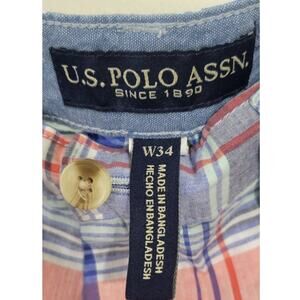 US Polo Assn Shorts Mens 34 Paid Blue/Pink/White Casual Preppy Shorts NWT