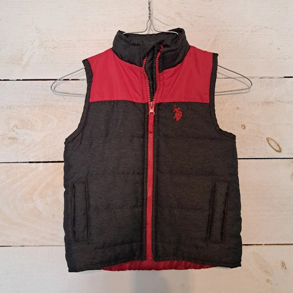US Polo Assn. Size 4T Puffer Insulated Vest Full Zip Baby Toddler Red And Grey