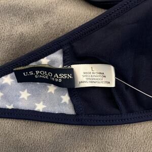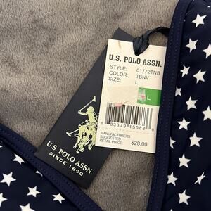 U.S. Polo Assn. Size L Navy Blue & White Star Print String Bikini Top