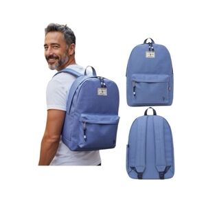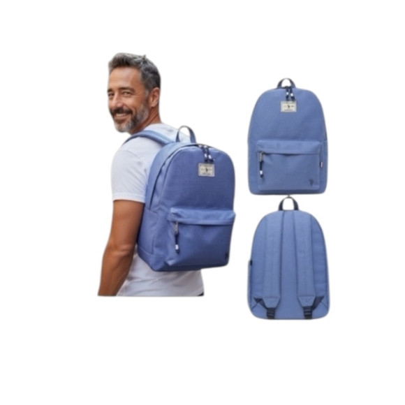Sky blue backpack with modern style. Perfect for daily use. Equipped with padded straps.