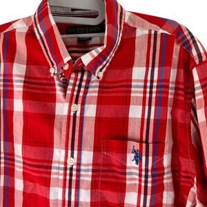 U.S. Polo Association Stretch Red Plaid Button Up Shirt Size Medium