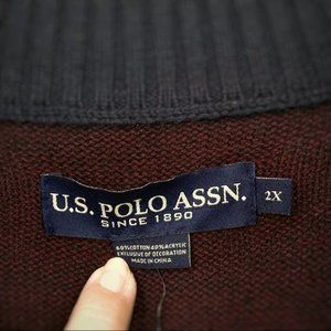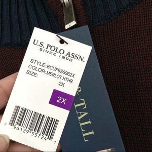 U.S. Polo Assn. Sweater 1/4 Zip Mock Neck Cotton Blend Merlot Sz 2XL NWT