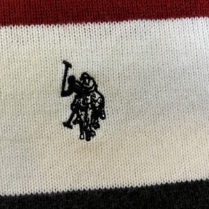 US Polo Assn Sweater Mens Large L Acrylic Striped Gray Red Black Long Sleeve