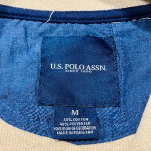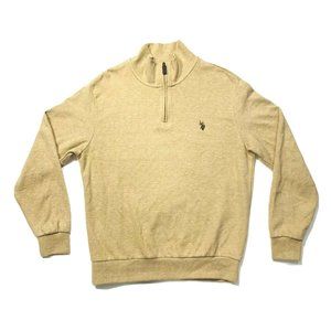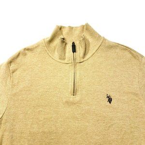 U.S. Polo Assn Sweater Pullover 1/4 Zip Mock Neck Knit Cotton Blend Beige M NWOT