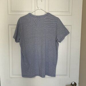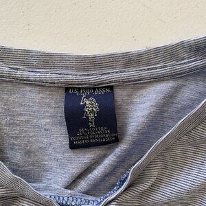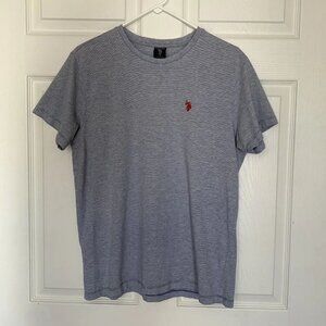 US Polo ASSN Tshirt Men Medium Blue Stripe Crew Neck Casual Red Logo.