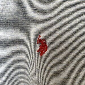 US Polo Assn Tshirt Men Medium Blue Stripe Crew Neck Casual Red Logo