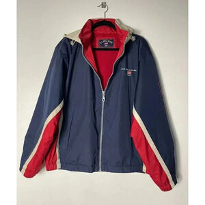 U.S Polo Assn. Vintage Mens Embroidered Logo Full Zip Hooded Jacket Blue Red XL