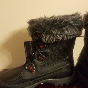 Women's U.S. Polo Assn. Faux Fur Boots. Get trendy winter weather style with the U.S. Polo Assn. Canyon! With a combination of synthetic and quilted uppers, faux fur collar, and cozy fabric lining, this boot is cozy and stylish. Pair the Canyon with skinny jeans, leggings, or midi skirts to show off your rugged style.