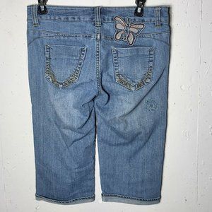 U.S. Polo Assn. Womens Butterfly Flower Embroidered Denim Blue Jean Capris 5/6