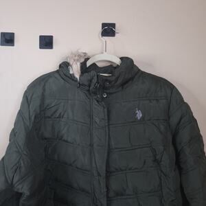 U.S. Polo Assn. Women’s Hooded Puffer Jacket in Green Size 1X