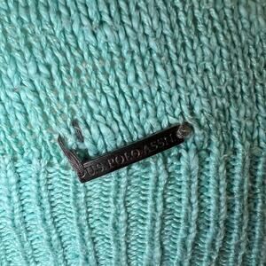 Beautiful aqua knit sweater with sailboat by US Polo Assn. In good used condition. A small snag. This is the type of knit you can easily pull a snag through to the back to fix.