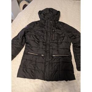 US Polo Assn Women’s Size Large Puffer Coat Jacket Black Hooded Zip Up