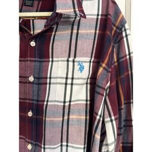 U.S. Polo Assn. XL Plaid Button-Down Shirt Burgundy/White/Blue