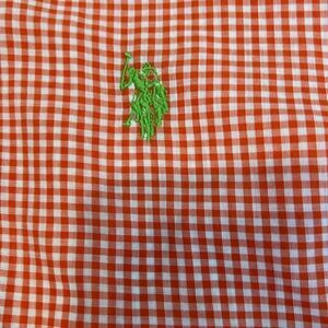 US Polo Assn women’s szL sleeveless orange&white checked button front blouse EUC