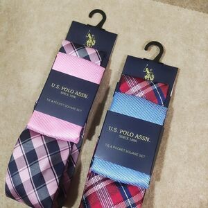 U.S. Polo Assn. Pink and Blue Tie & Pocket Square Handkerchief Set #J