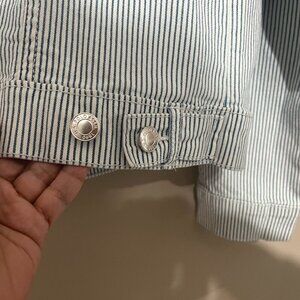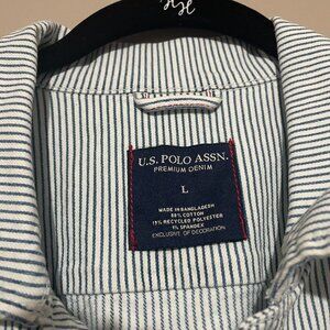 U.S. Polo Association Blue Striped Distressed Denim Jacket, Large, NWT