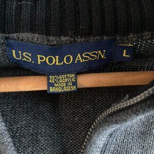 US Polo Association Knit Sweater Turtleneck 1/4 Zip Cotton Blend Gray Sz L