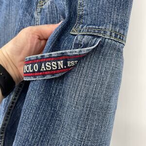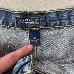Very good condition, pre-owned, U.S. Polo Association Men's Carpenter Denim Shorts in Size 42. Super cool US Polo Log on back pocket and side detail. Inside front pockets have some piling but you can't see it when wearing as it is on the side. These are great shorts. See all pics and measurements below.