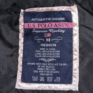 U.S. Polo Association Puffer Coat w/Faux Fur Hood, sz Medium (girls). Stylish and warm. Looks to be not worn at all or only worn once or twice; excellent Preowned Condition.