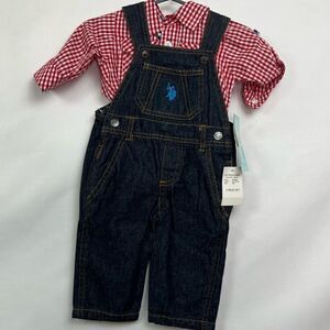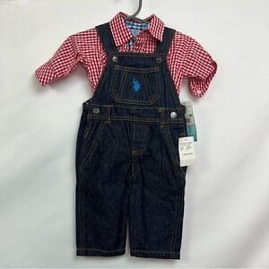 US Polo Association Denim overalls 2 piece set Brand New