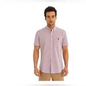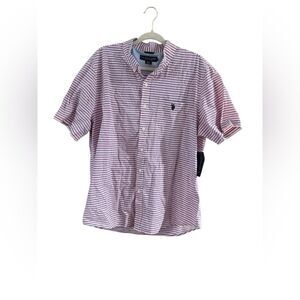 NWT US Polo size XL men’s short sleeve pink/blue/white shirt hundred percent cotton excellent condition no issues P 285 J 32