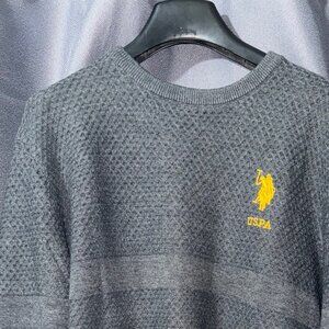 US Polo Sweatshirt Stripe Mesh Heathered Crew Neck Pull Over Good Fit Sweater L