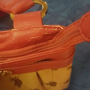Very cute khaki and pink purse. Good shape, just leather is getting a little worn. You can see where I took the pictures of it.
