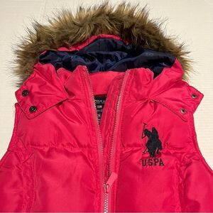 U. S. Polo Assn. Bright Pink Vest, Hooded with faux fur trim Size Small