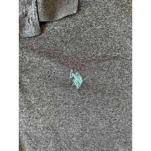 Mens marled gray short sleeved polo shirt. Logo embroidered on upper left side. Banded sleeves, drop hem.