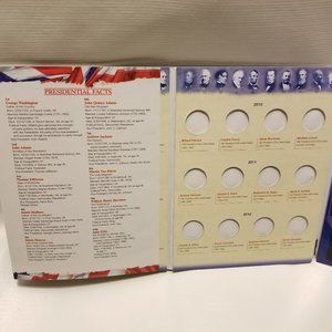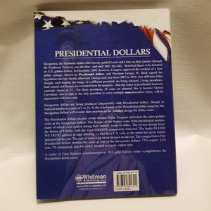 Whitman brand coin holder/ folder for US Presidential Dollars of 2007 onwards. Coins not included. Dark spot on inner spine isn't dirt, just crossing out of a previous owner's name. Otherwise great condition!