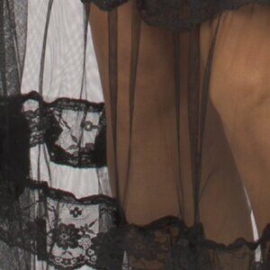 elastic waist, tiered design, mesh design, floral lace trim, partially lined